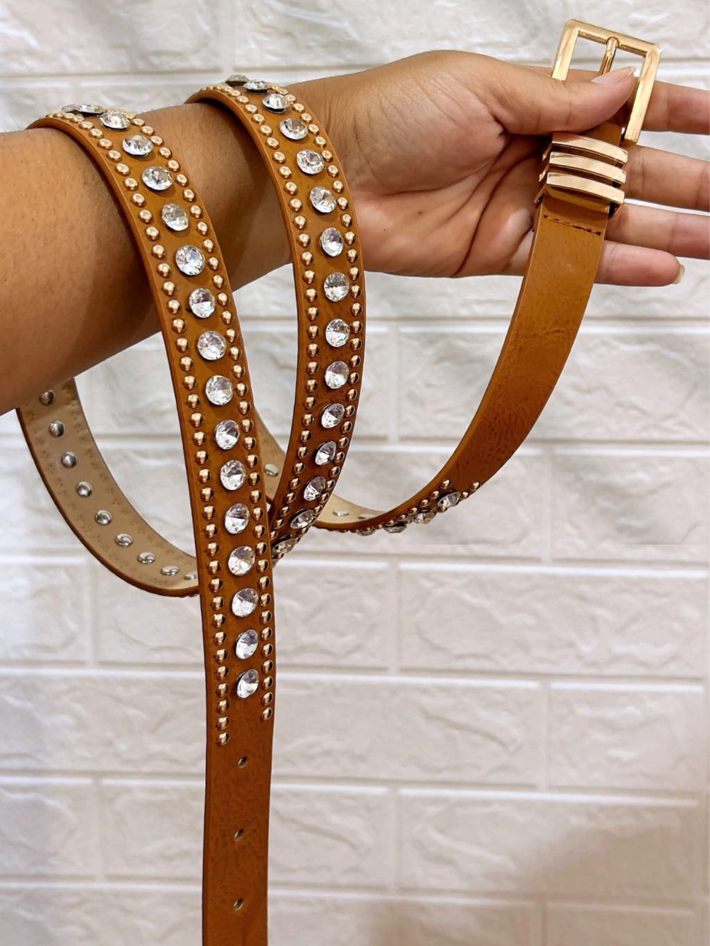 Cinto em couro sntetico com detalhes em pedraria