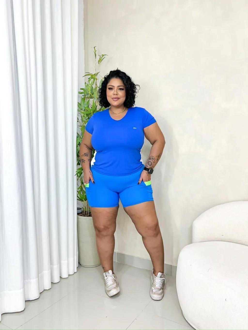 Conjunto composto por Bermuda com detalhe na lateral contem bolsos e top com recorte.