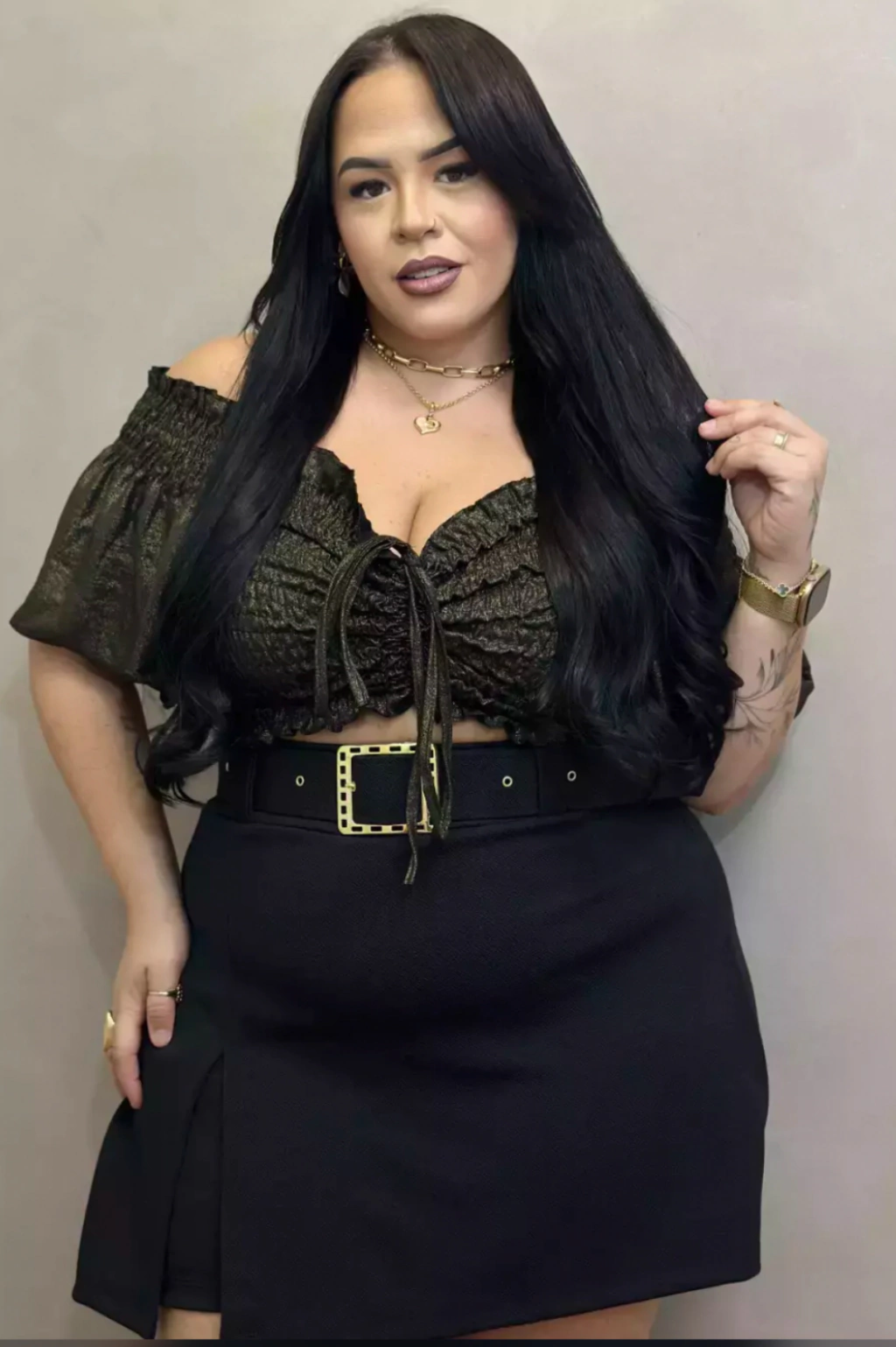 Combine o Cropped Brilhoso Estrela de Ouro com suas saias e calças favoritas, e sinta-se incrível em qualquer situação!